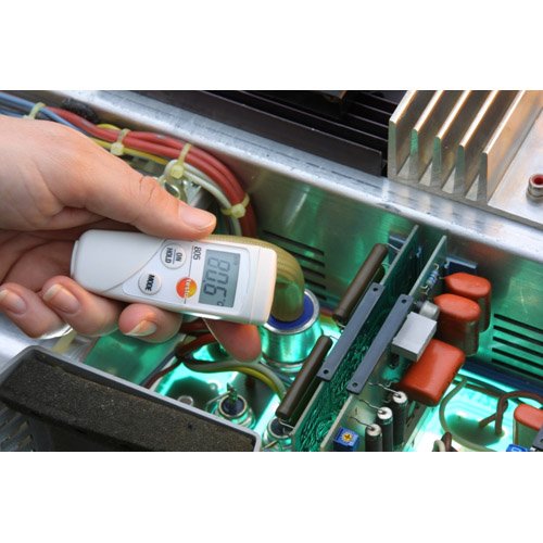 The Testo 805, with the TopSafe (optional), is waterproof and protected from impact and dirt according to IP 65. It has a scan mode for long-term measurement, and a Hold- function for freezing the measurement values. In addition to this, minimum and maximum values are reliably displayed.